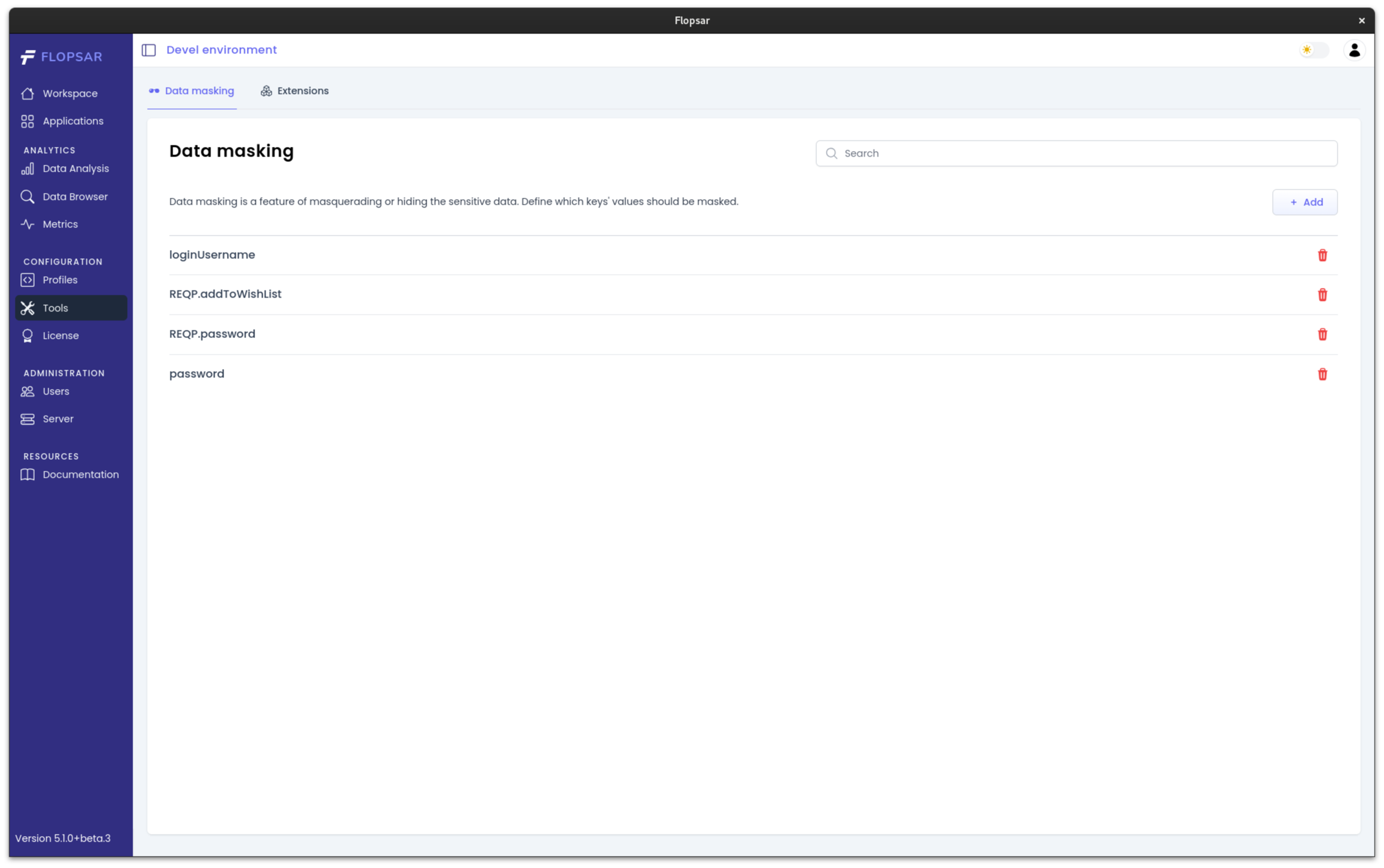 Addbutton located in the top right corner. This will open the data masking settings.In the data masking settings, you can specify the parameter key for masking sensitive data.