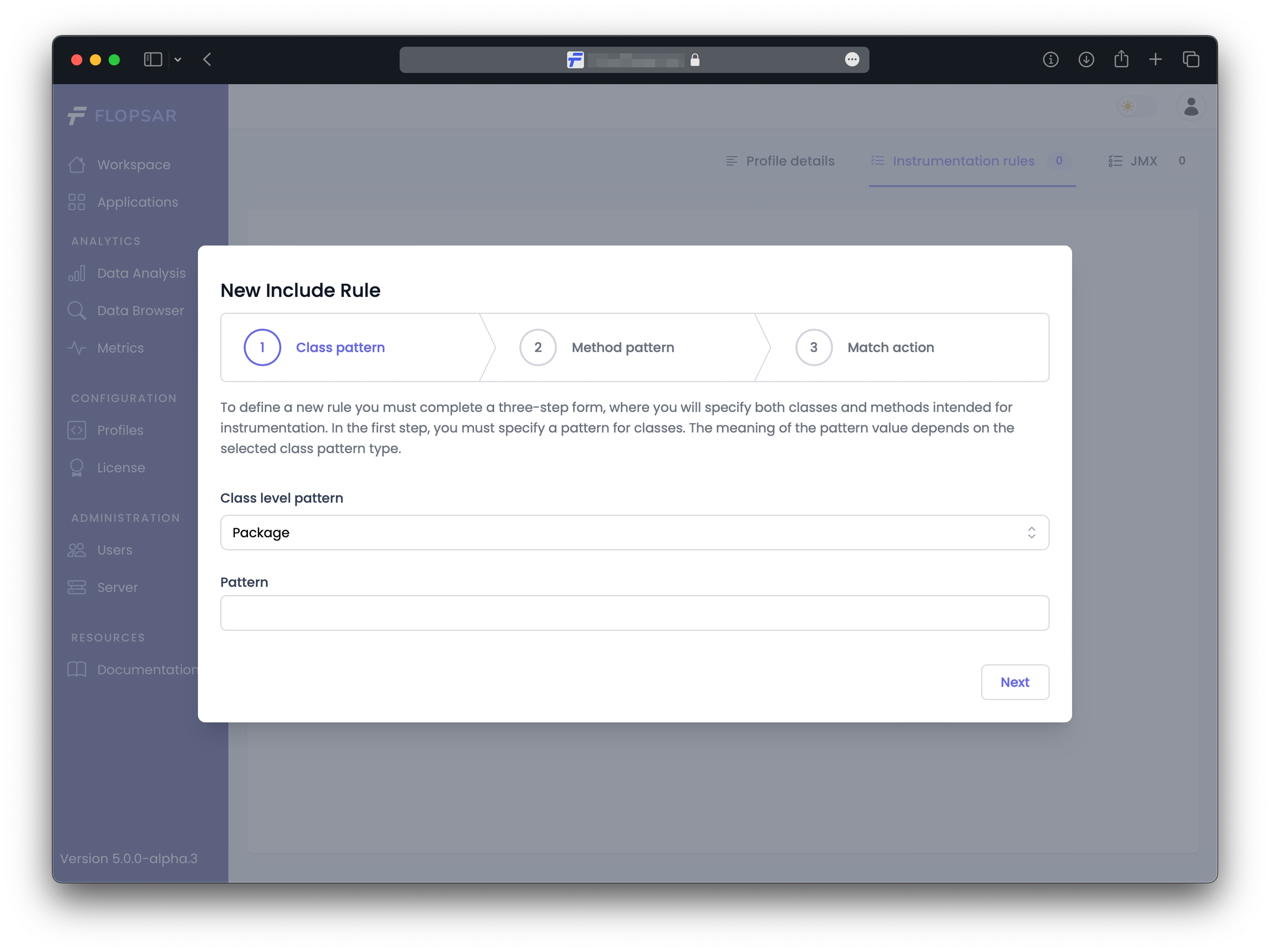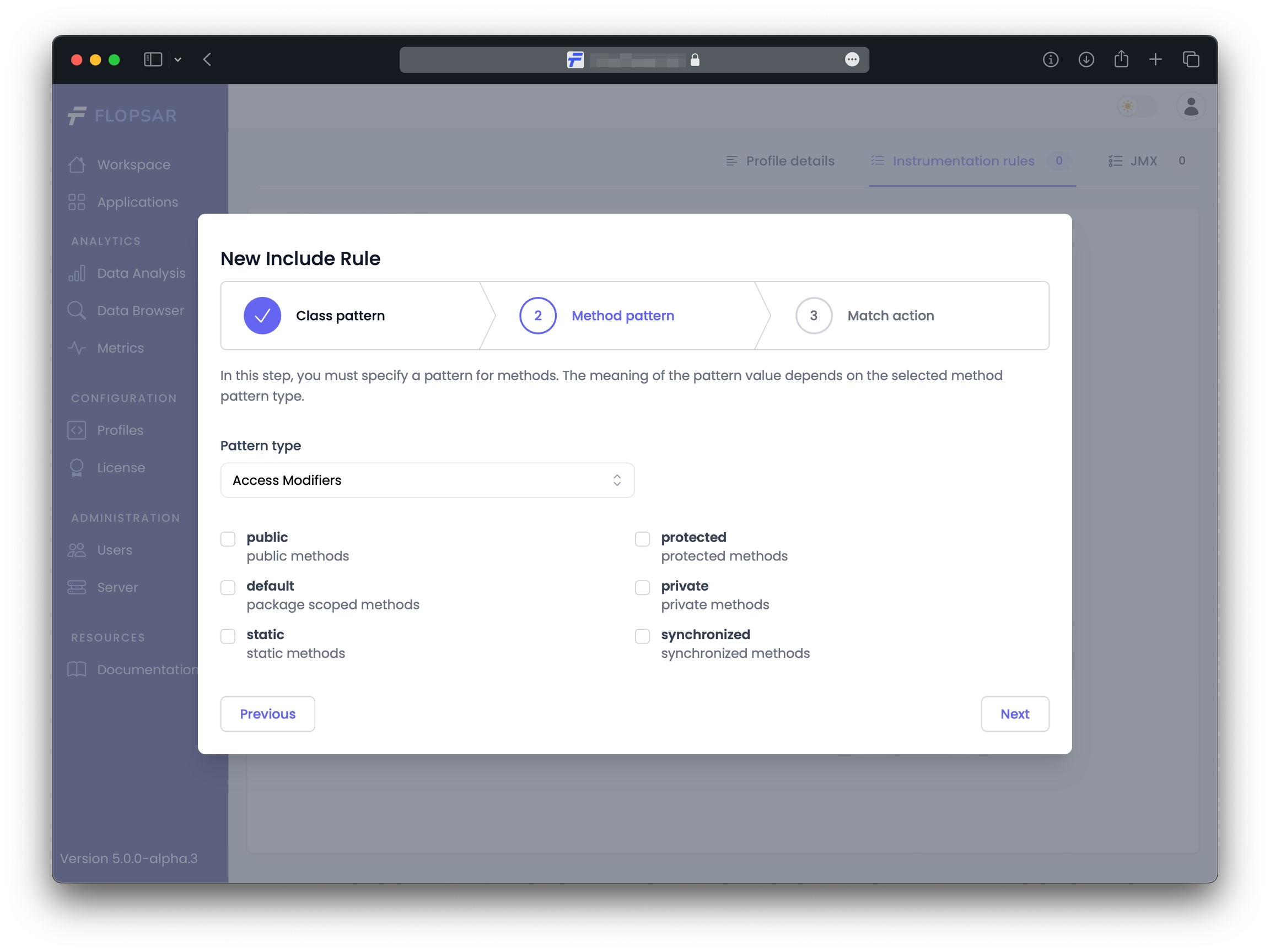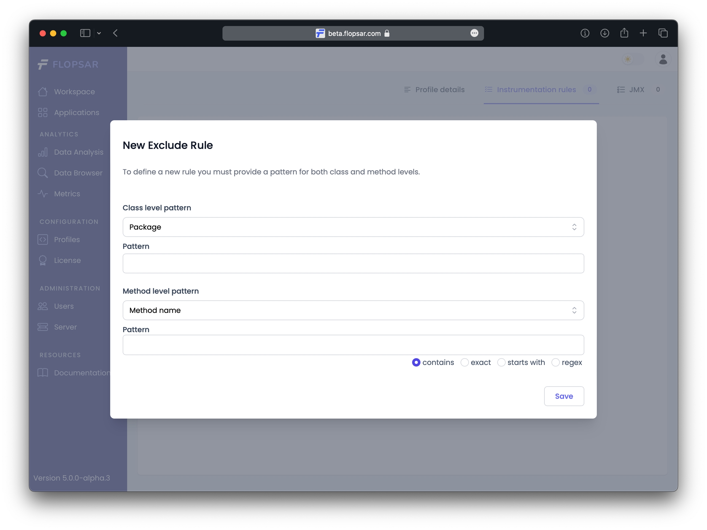To add a new rule, you need to specify both class and method patterns. The following options are available for the Class level pattern