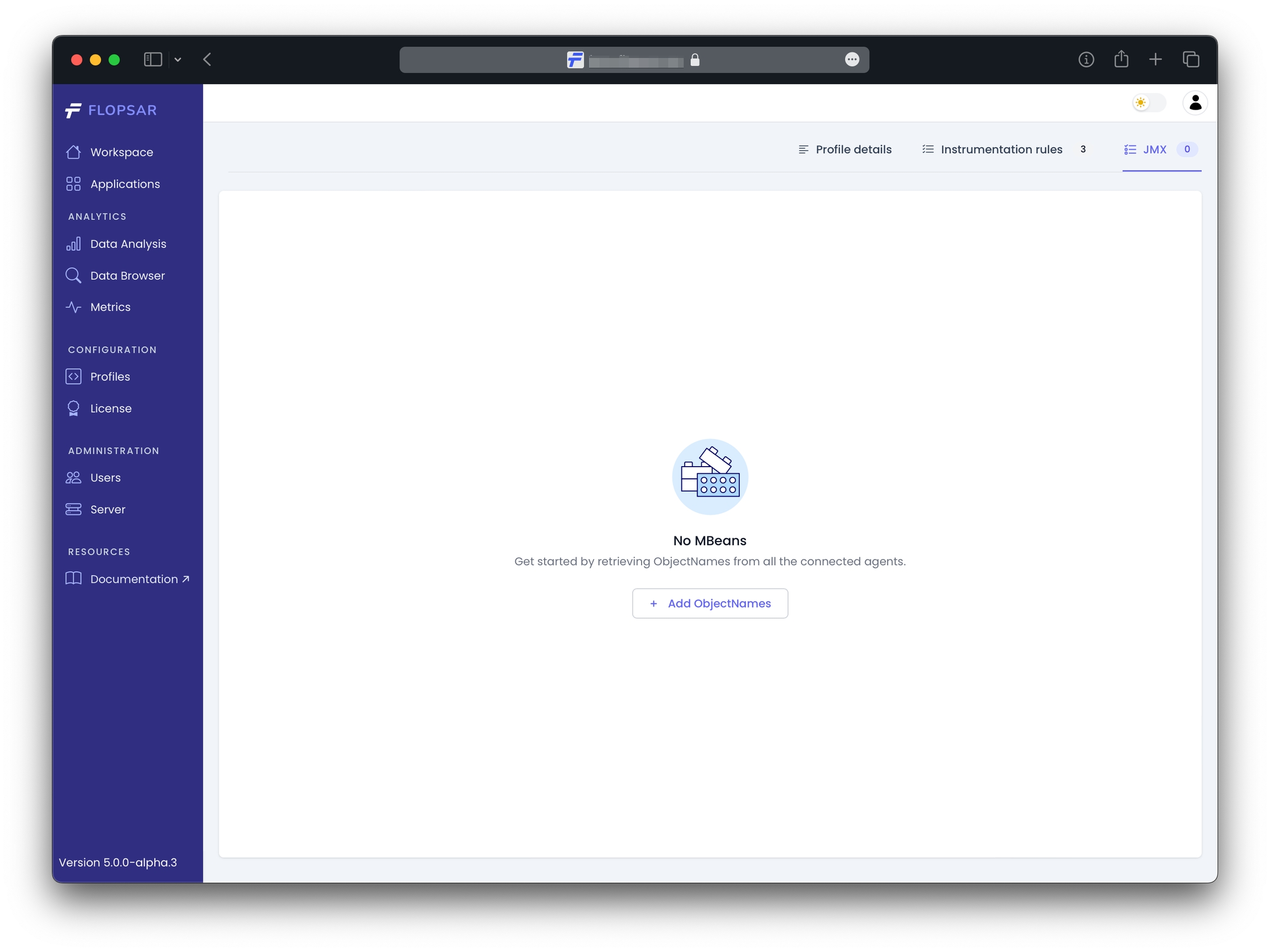The profile details page contains a selected profile detailed information, such as its settings, instrumentation rules and JMX list of MBeans.