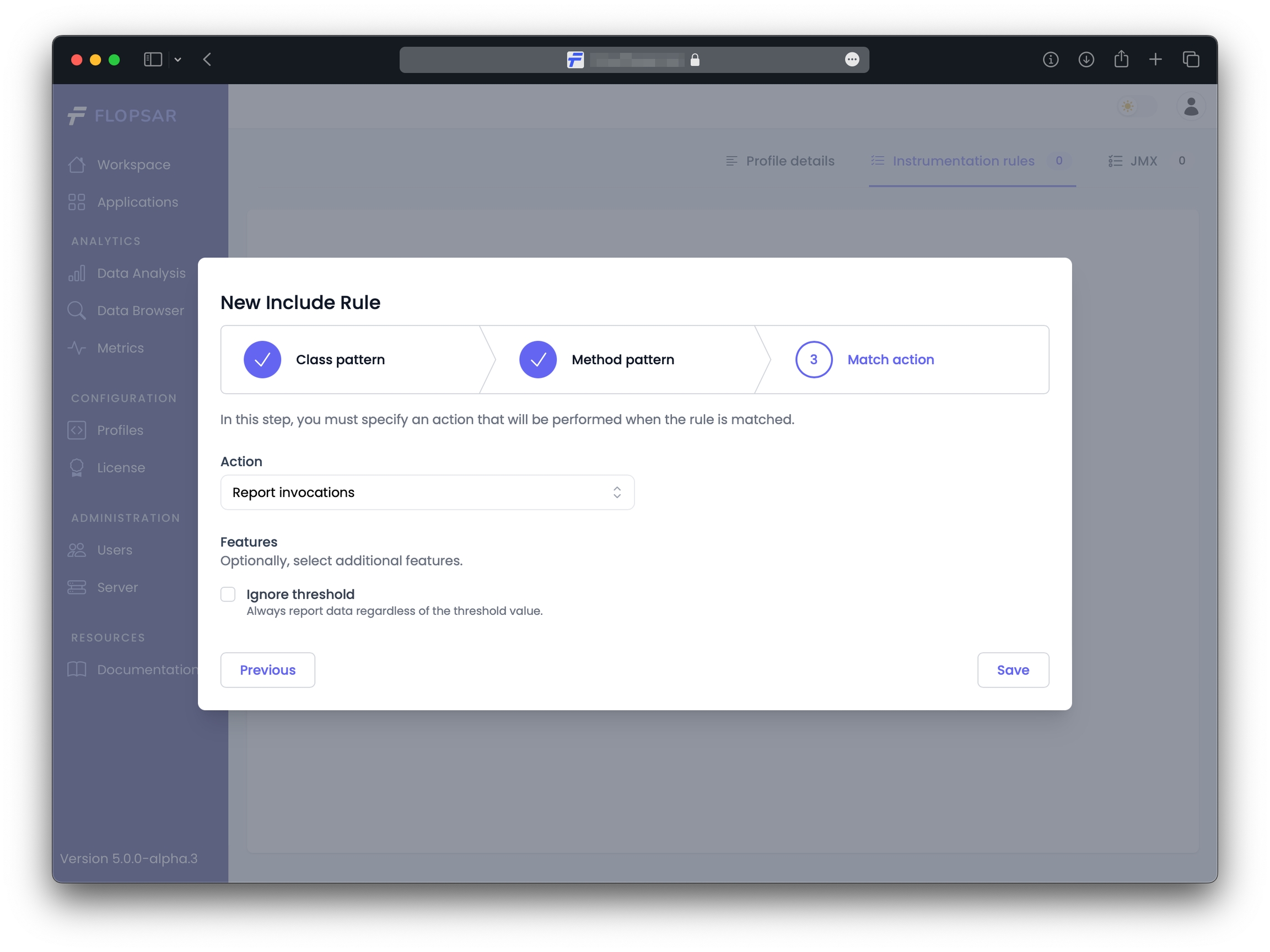 The Overhead Control feature is designed to provide automatic management of additional overhead imposed on the instrumented application as a result of the Flopsar tool's operation. Monitoring applications and gathering performance data is a critical aspect of maintaining software quality. However, the act of monitoring itself can introduce overhead, potentially impacting the accuracy of collected data and the performance of the monitored application. The Overhead Control feature aims to address this issue by automating the control of overhead caused by the Flopsar tool. The feature monitors the performance metrics of the application in real-time. It uses predefined performance criteria to dynamically adjust the monitoring overhead. When the application's performance is within acceptable limits, the overhead is minimized to reduce interference. When the algorithm detects a method, whose invocations are not reported most of the time, it removes the instrumentation from this method.