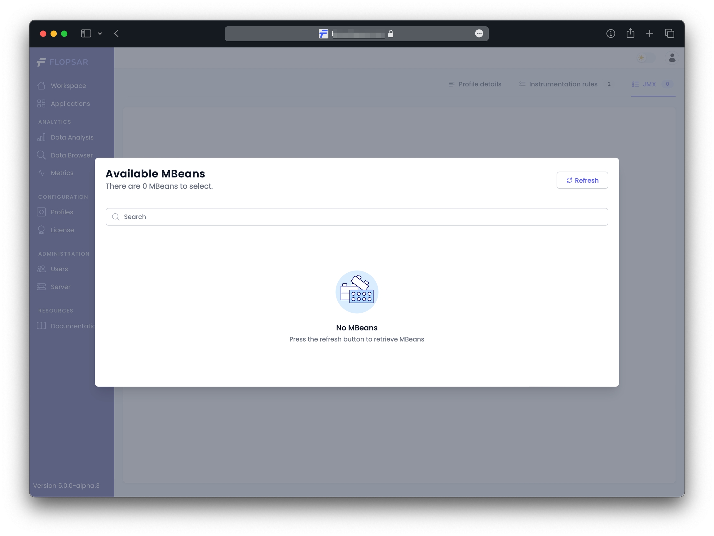 This view enables specifying which MBeans values you want to collect. To add MBeans, you need to retrieve them from agents first. You can do this by pressing the Add ObjectNames