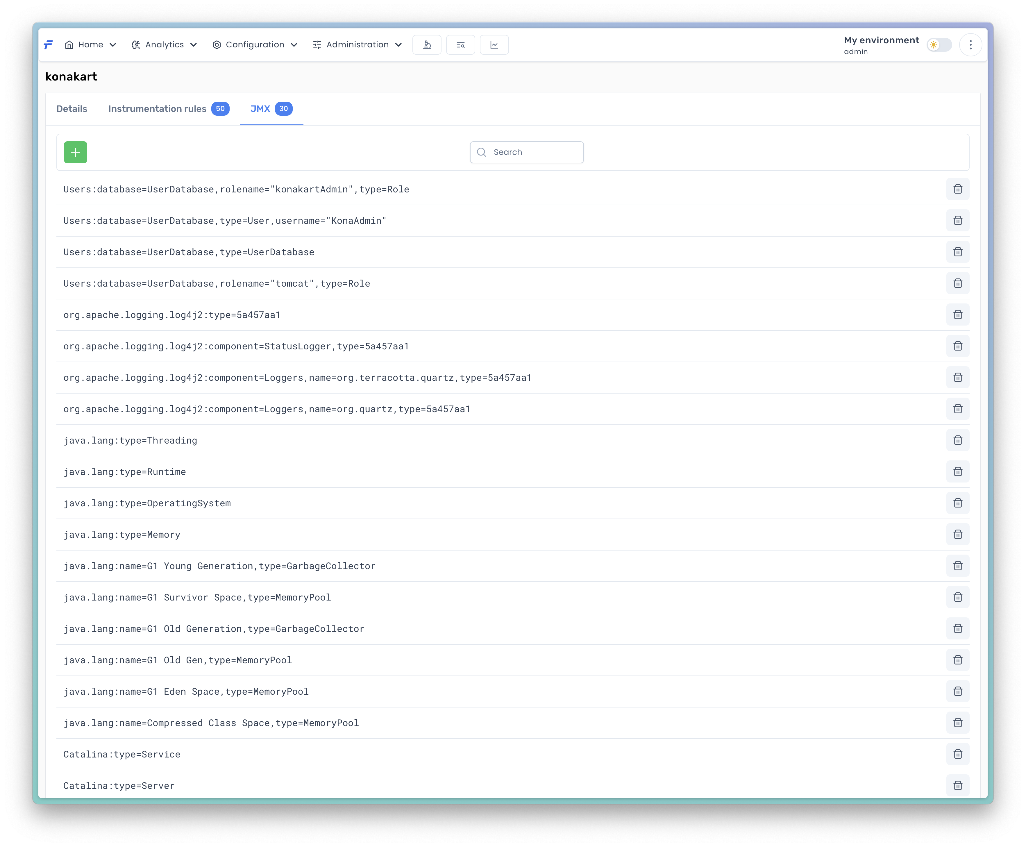 This view enables specifying which MBeans values you want to collect. To add MBeans, you need to retrieve them from agents first. You can do this by pressing the <mark style="color:blue;">`Add ObjectNames`</mark> button.&#x20;