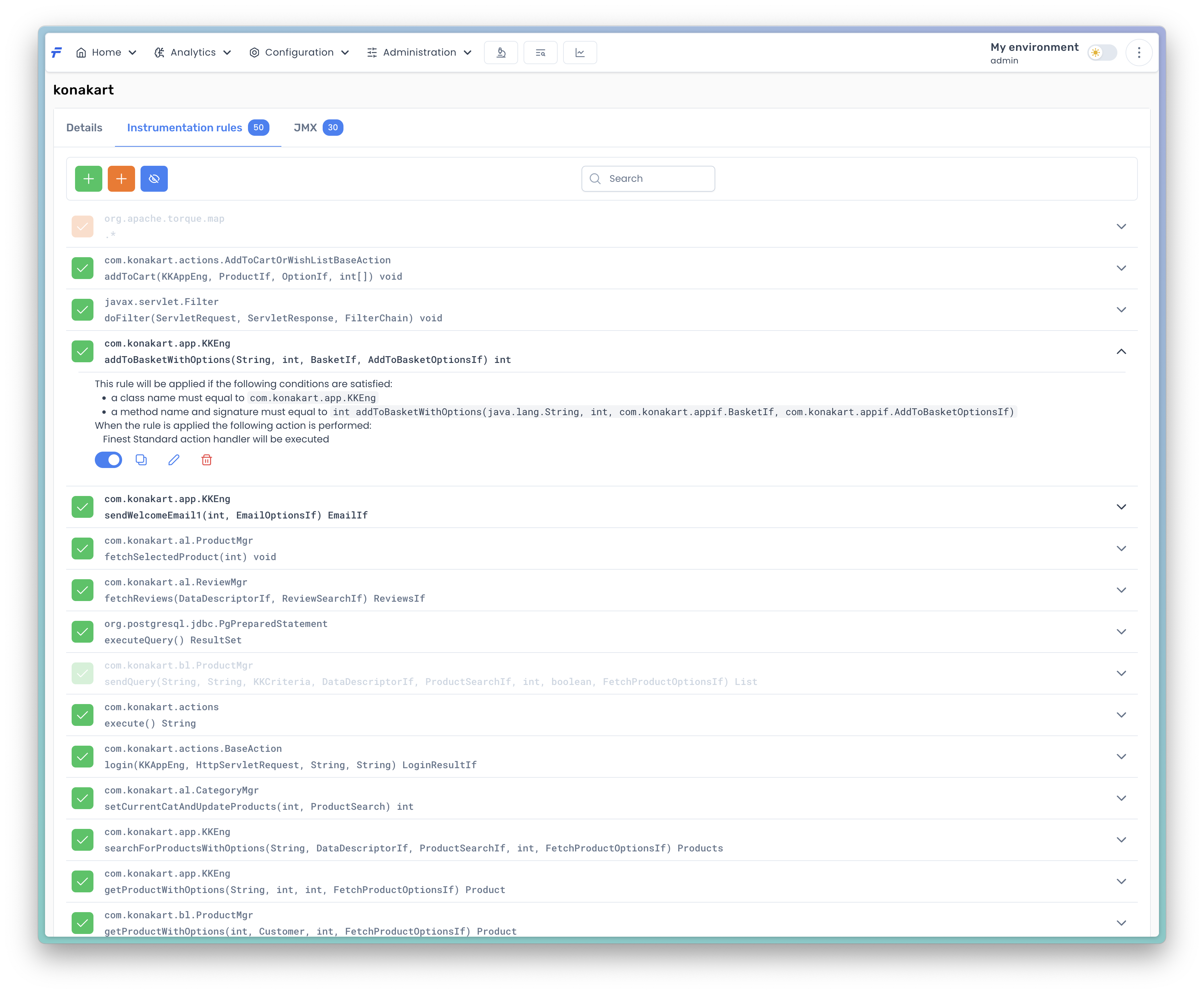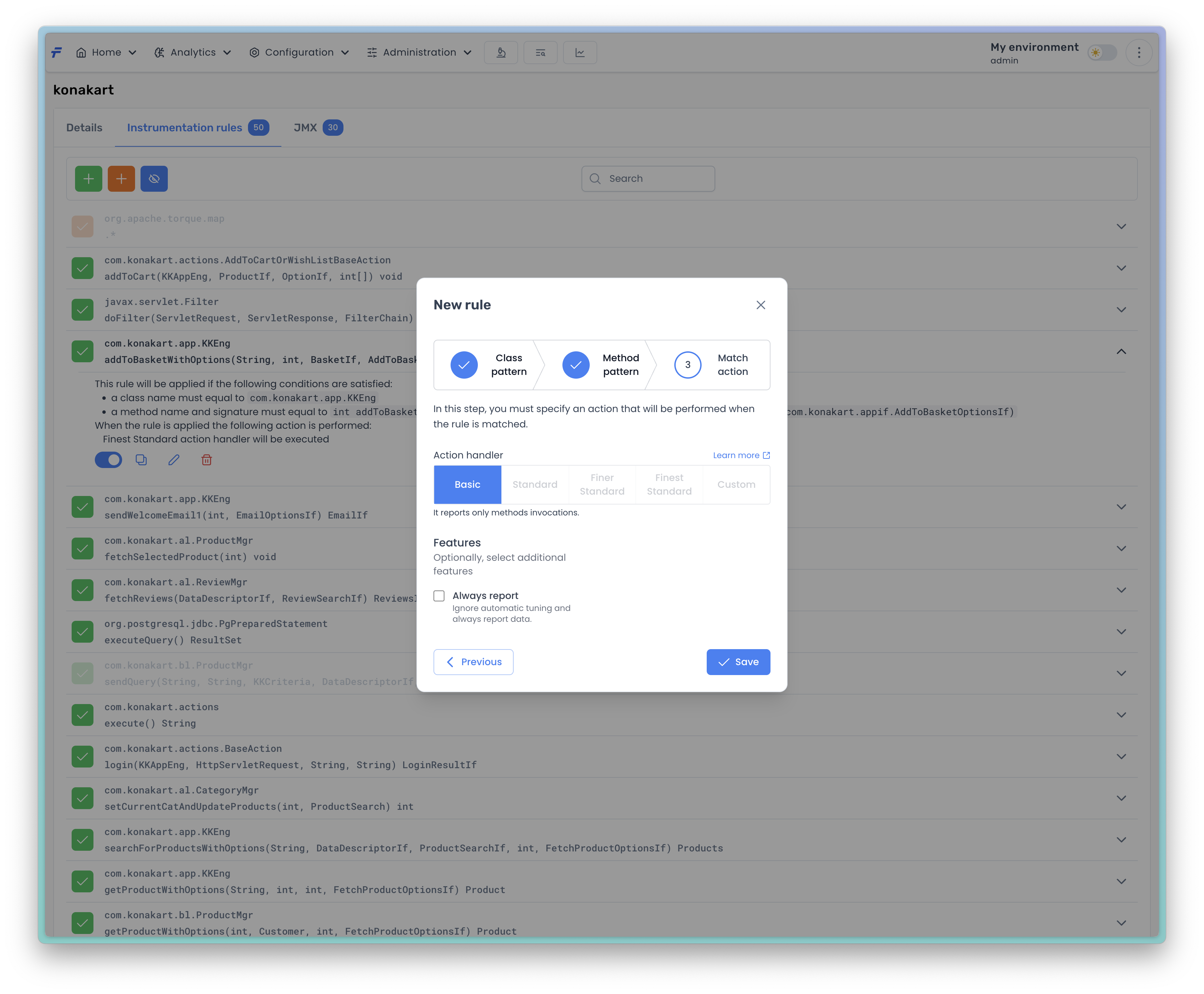 If you are done with the rule, press the <mark style="color:blue;">`Save`</mark> button to add the rule to the instrumentation rules list.