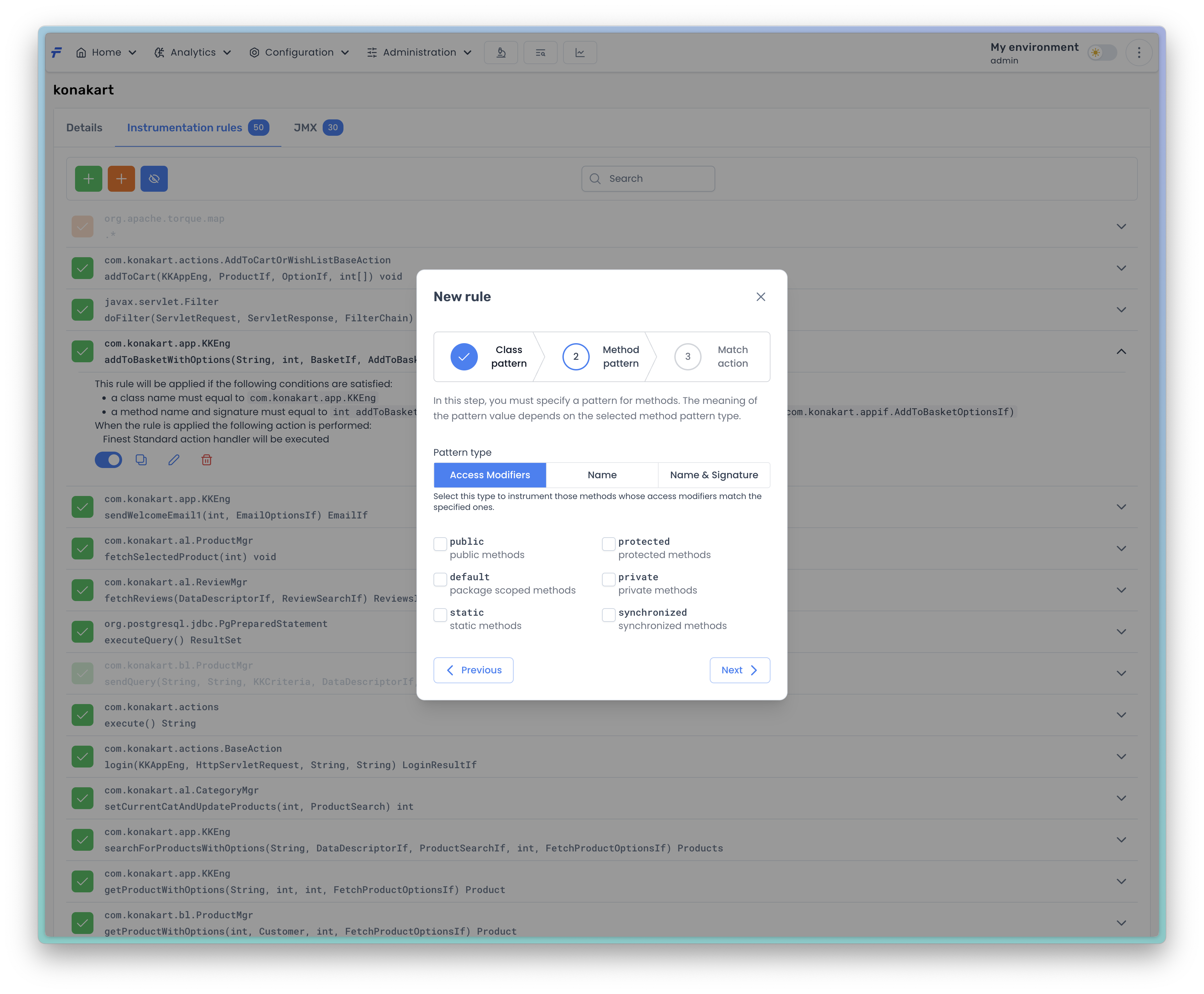 To add a new rule, you need to specify both class and method patterns. The following options are available for the <mark style="color:blue;">`Class level pattern`</mark>: