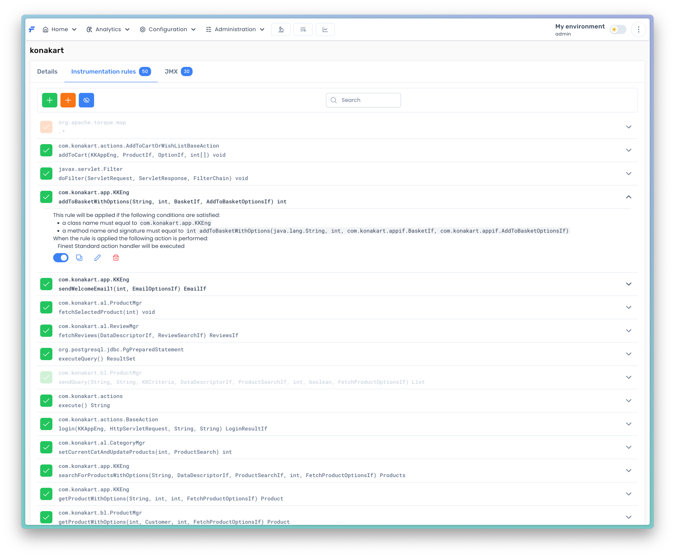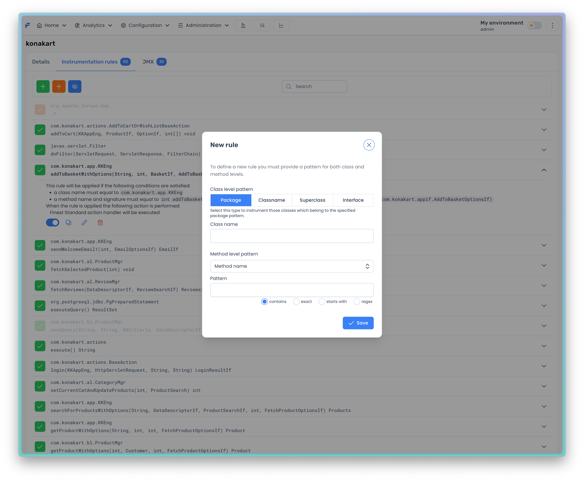 If you are done with the rule, press the Save button to add the rule to the instrumentation rules list.