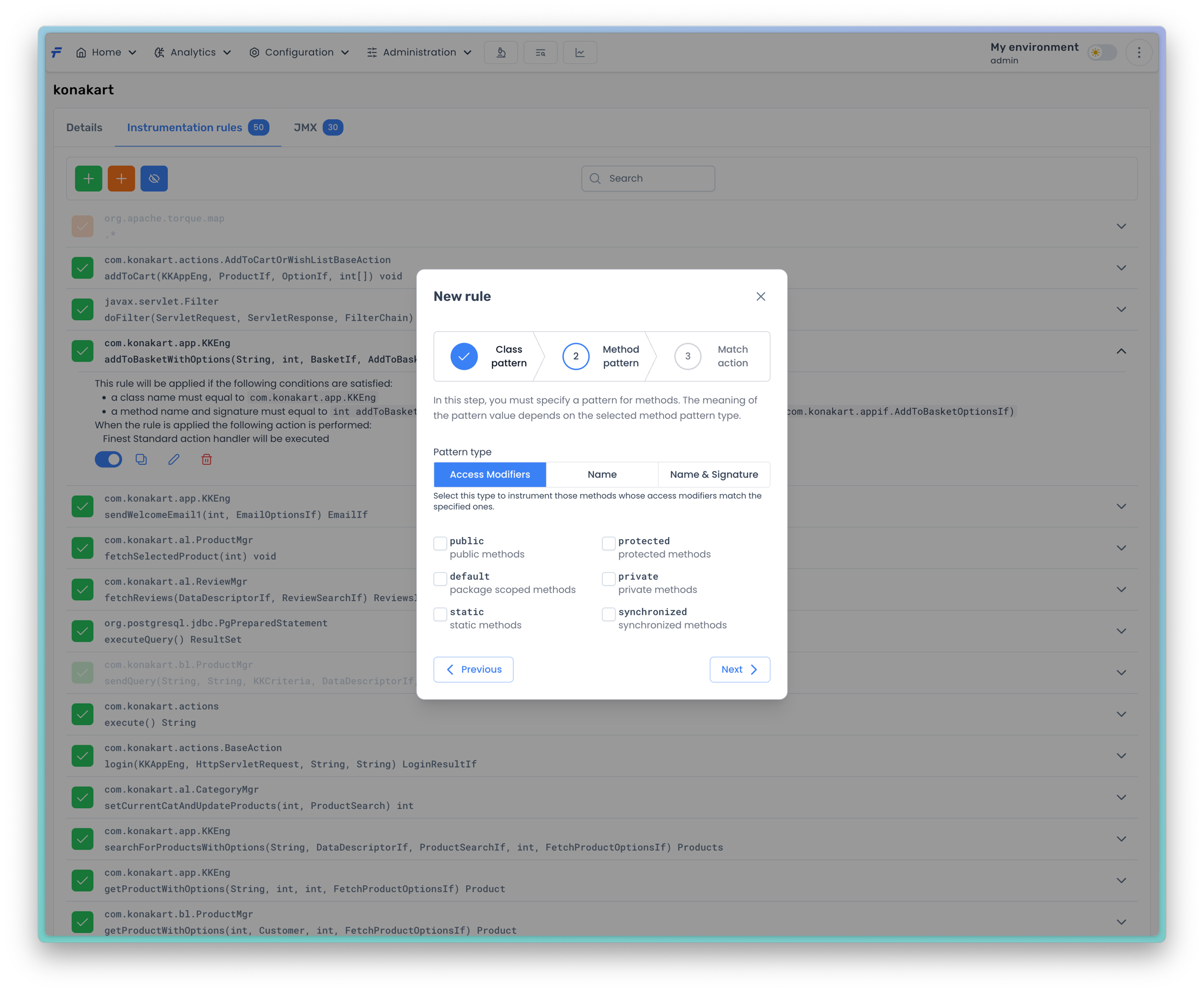 To add a new rule, you need to specify both class and method patterns. The following options are available for the Class level pattern: