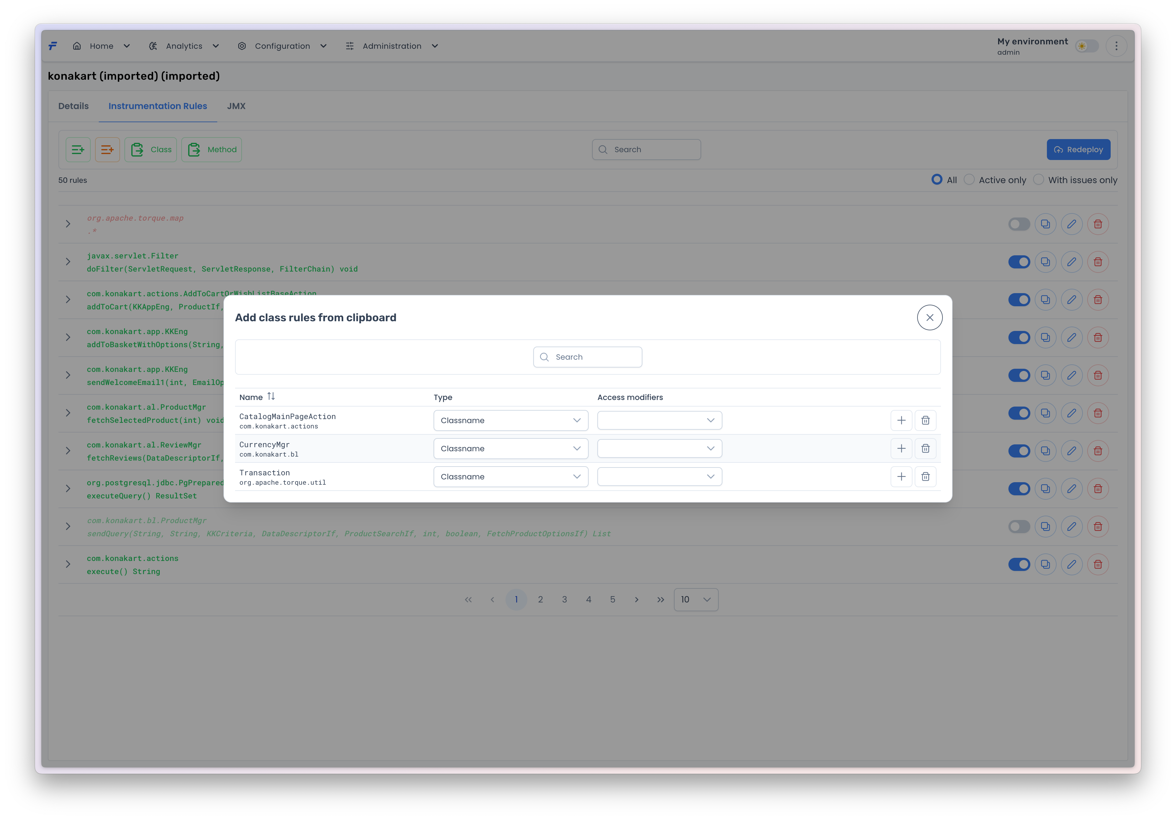 By default, those methods are instrumented which fulfill the conditions defined by the inclusive rules. However, sometimes these rules are too wide, i.e. they let too many methods or classes in. In order to exclude some classes and methods from instrumentation, you need to define exclusive rules. You can do it by pressing the <mark style="color:blue;">`Exclusive Rule`</mark> button. A new popup window will appear then.