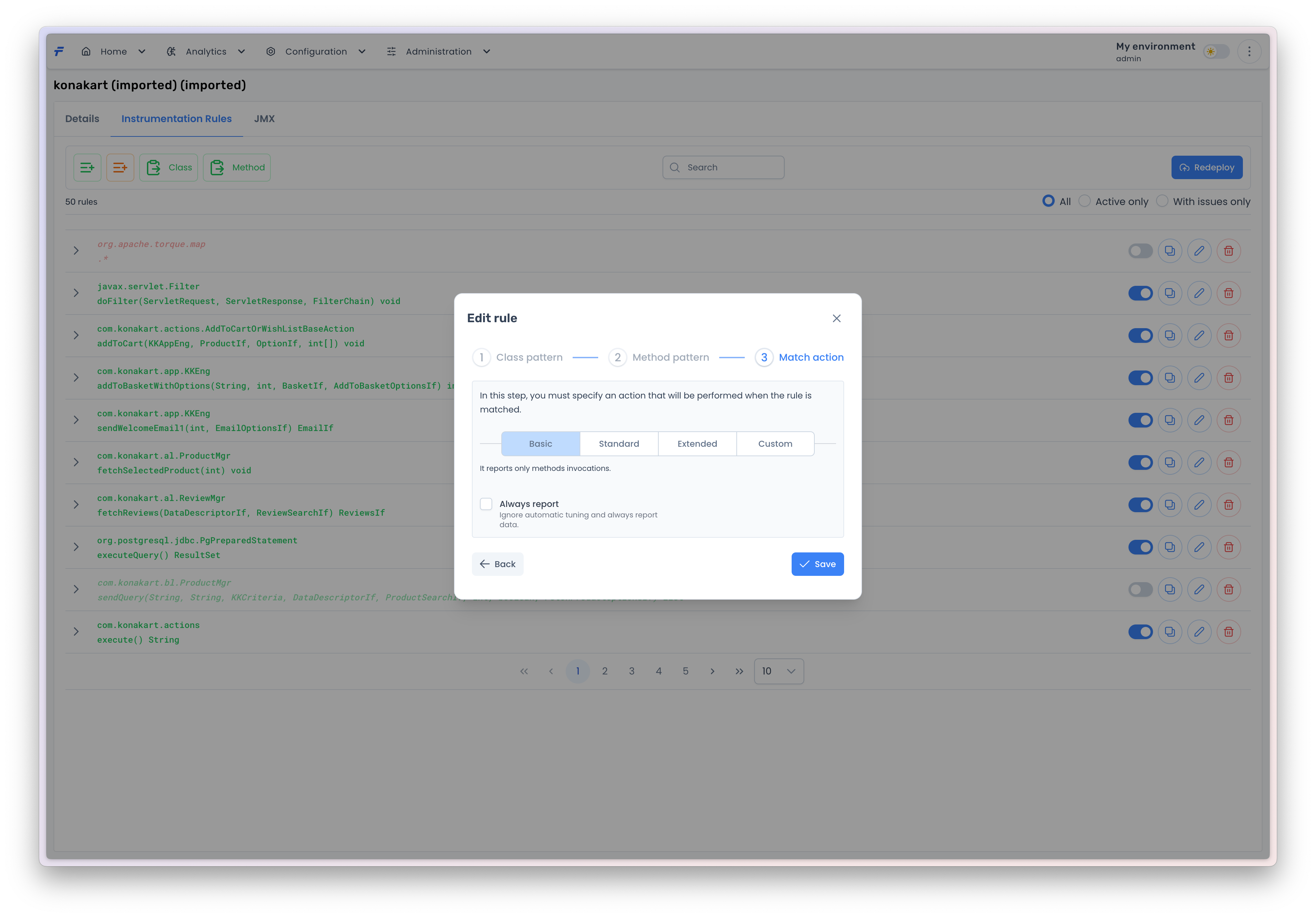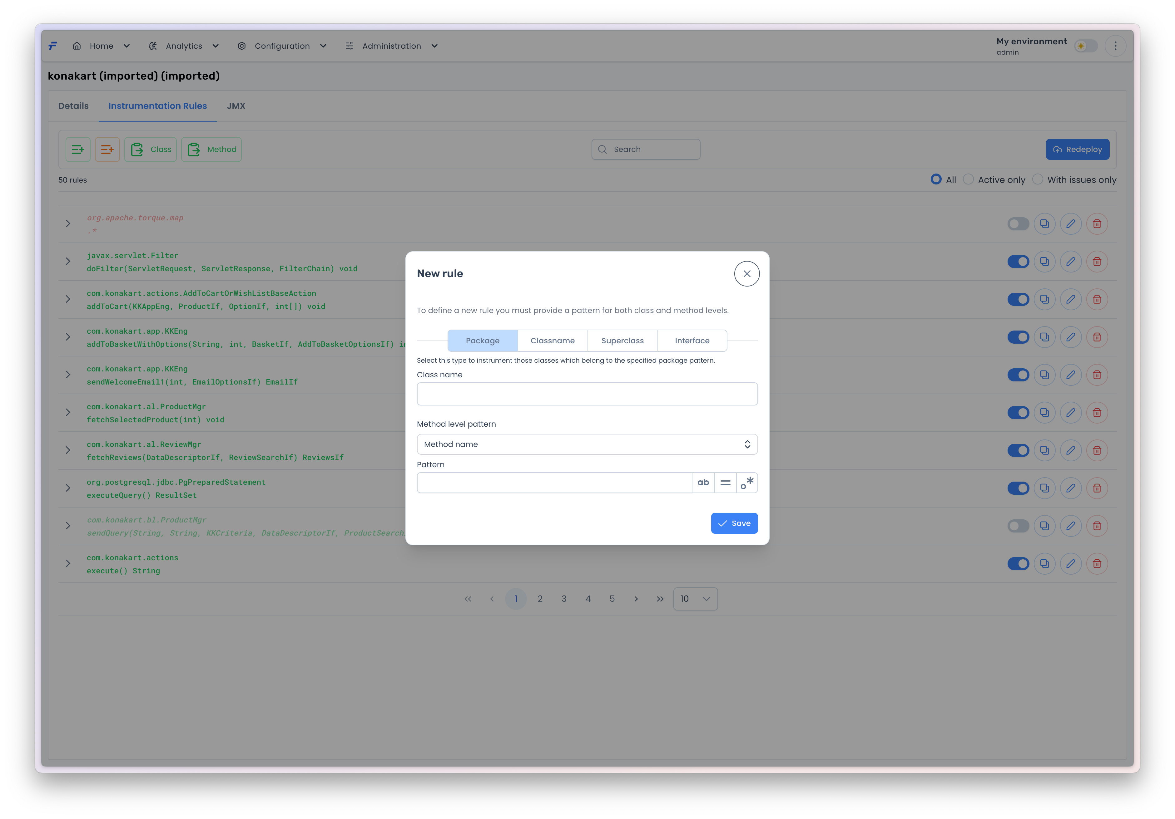 If you are done with the rule, press the <mark style="color:blue;">`Save`</mark> button to add the rule to the instrumentation rules list.