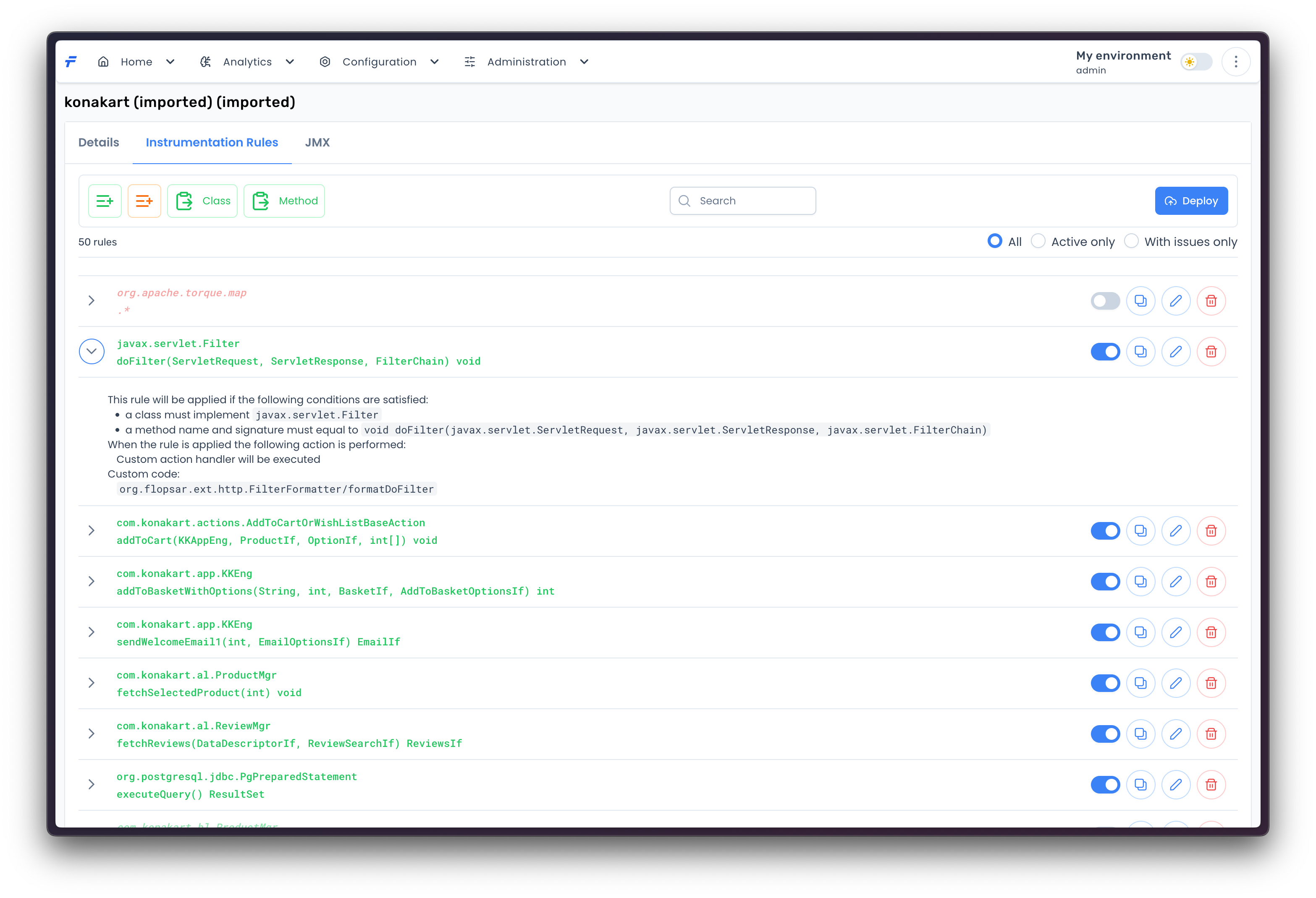 Here, you can define your rules which can be either inclusive or exclusive (see [Rules](https://docs.flopsar.com/6.2/user-guide/instrumentation#rules) for details).