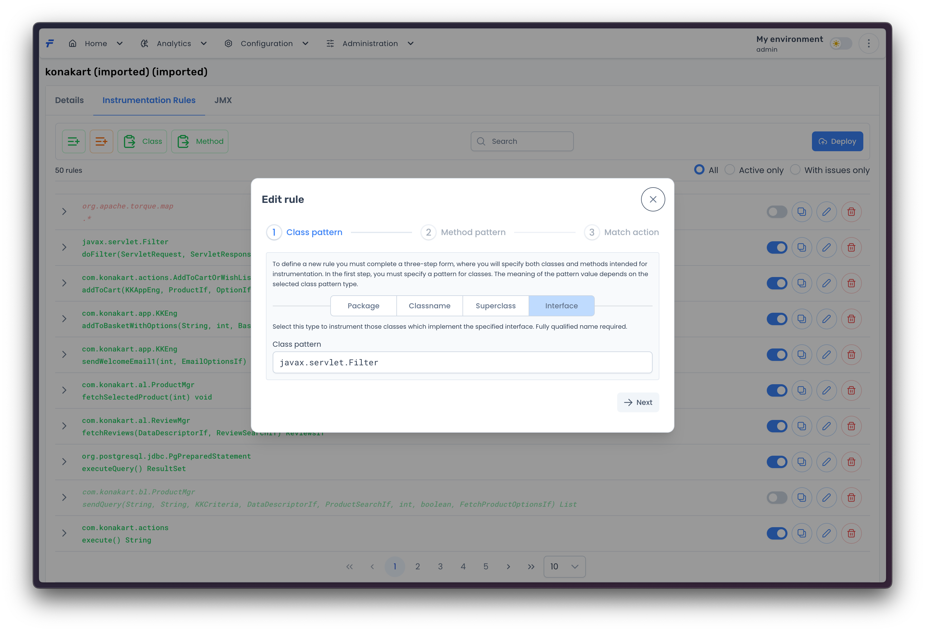 To add a new rule, you need to specify both class and method patterns. The following options are available for the <mark style="color:blue;">`Class level pattern`</mark>: