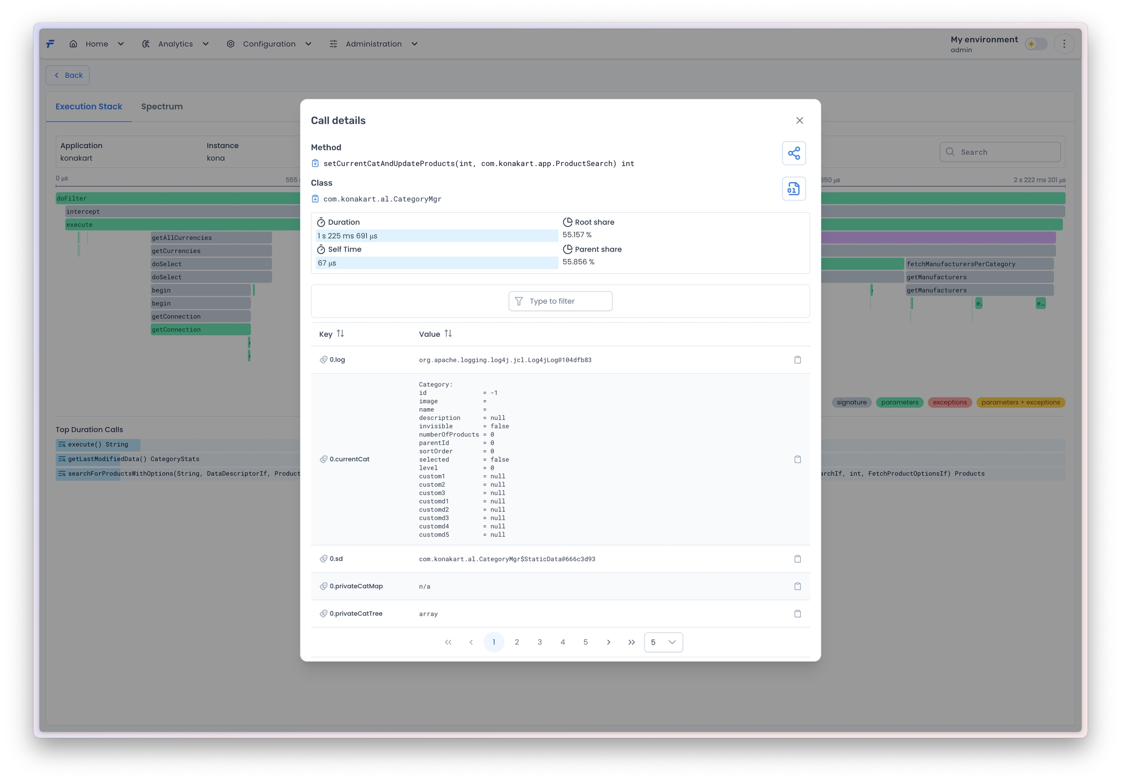 If you want to rapidly inspect parameter values associated with selected methods without navigating away from the current view, just click the link in the Parameters column. This feature streamlines debugging and data validation workflows by providing immediate access to detailed parameter information.