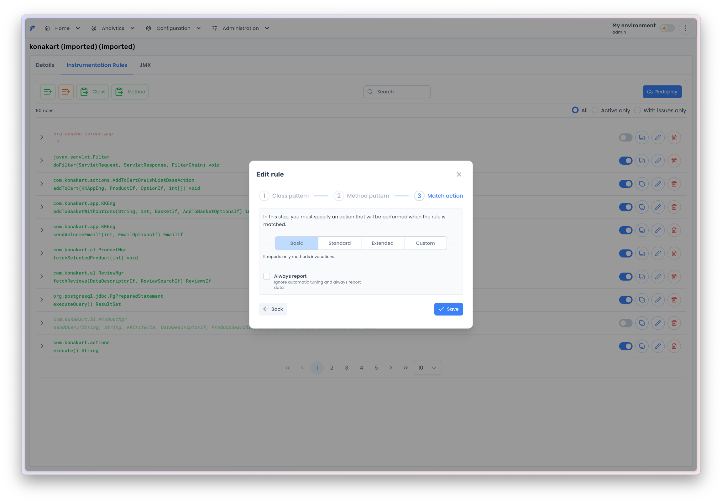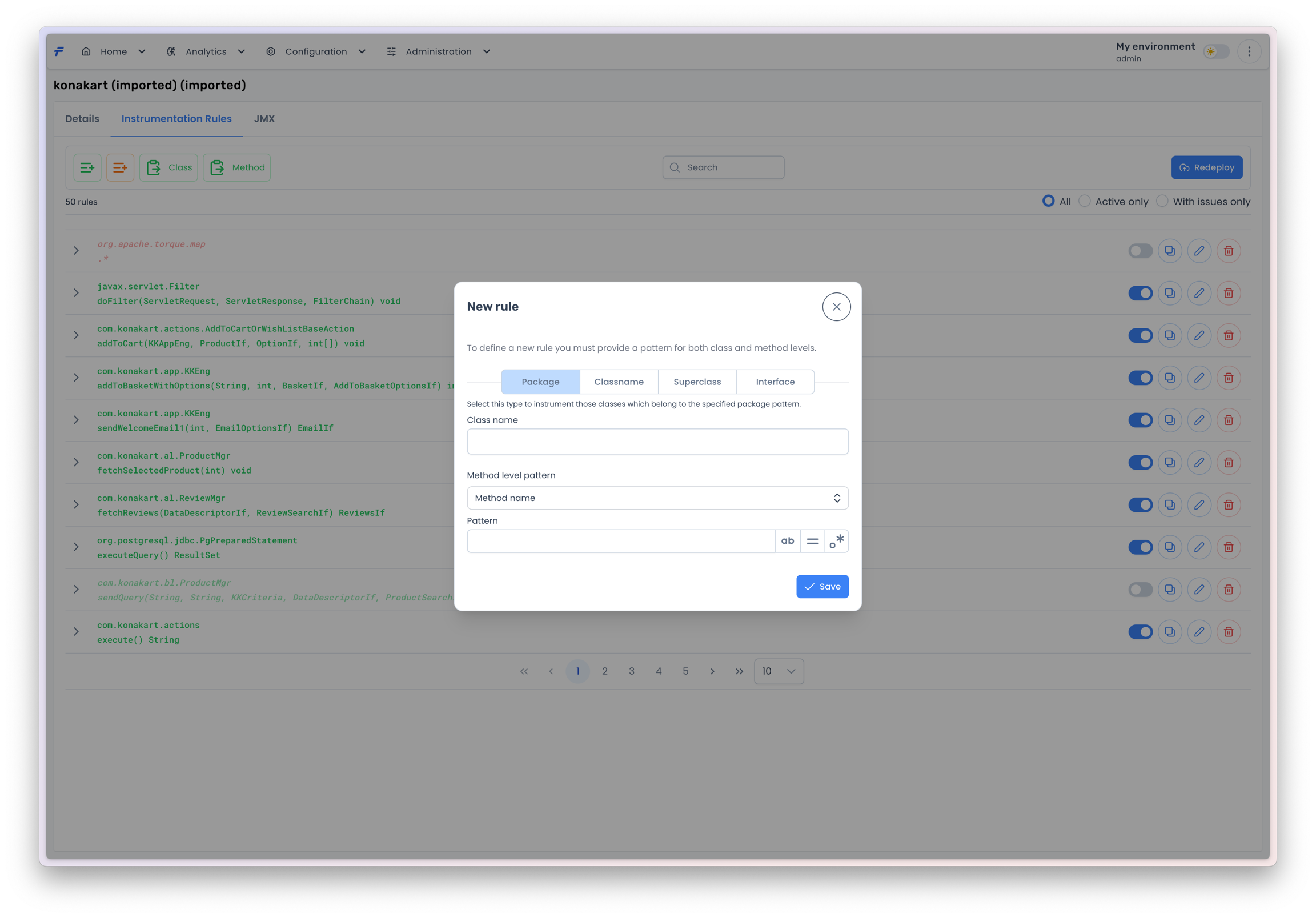 If you are done with the rule, press the Save button to add the rule to the instrumentation rules list.